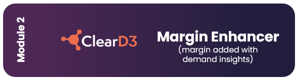 Margin Enhancer uses ClearD3’s proprietary supply chain data and AI framework to adjust the mark-up of the lane to match the demand by the customer: mark-ups will be higher for high-demand lanes and lower for low-demand lanes.